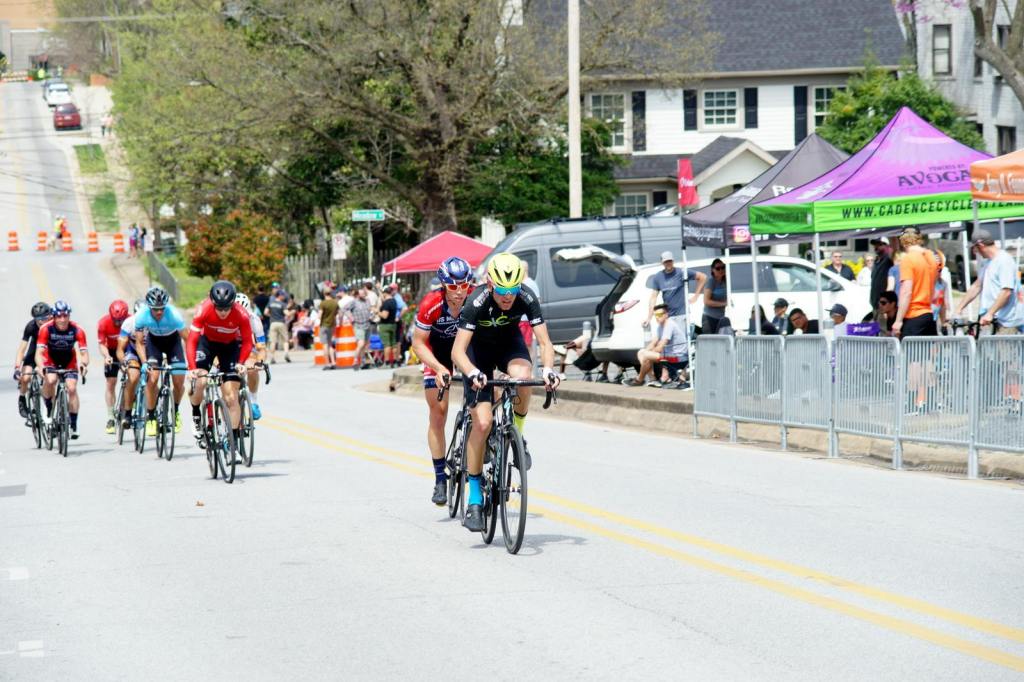 The 117-mile loop for stage 2 had a new approach to the finish, climbing the West Fork overpass and descending the Wall before heading north on 265. This was sure to break up the race a little more than the usual charge down Highway 71 all the way to Fayetteville. It was warm and sunny and looked to be a great day to be out on the bike. In following with tradition there is not much to report from the first half of this stage. The breakaway of three men got established, with Owen Schott (Velobrew) the most notable rider. They were eventually joined by five chasers, with a couple of Kelley Benefits riders in there. at the base of Mount Gaylor, the leaders were over three minutes ahead of the peloton. I attacked right from the start of the climb, planning on either bridging across, or at least making sure the peloton rode hard up the climb. I got brought back after a few minutes and then Zach Gregg (Kelly Benefits) attacked. Nobody responded so I attacked and also got away solo, trying to bridge across. I couldn’t close the gap and while he eventually caught up to the breakaway, I was left in no-man’s land and was caught on the final slopes of the climb. The peloton crested the climb just over a minute behind the leading group and the chase was on. When we hit the west for limb, we were 90 seconds behind the breakaway. I pushed the pace on the overpass climb which caused our group to split in half. The second, third, and fourth place riders had all been dropped and this was a great chance to jump a few spots in the GC. Eric and Reid were both there with me in the group of about 20 guys. We tried to organize a chase, but there just weren’t enough strong riders left in our group to close the gap. We passed a few riders who had been dropped from the breakaway which was now down to just two riders. Owen Schott won the stage ahead of Zach Gregg. Our group crossed the line 56 seconds later, with Eric managing to finish 10th after doing much of the work at the front of our group. With a few riders being dropped I moved up to 12th overall, and Eric moved up to 17th.