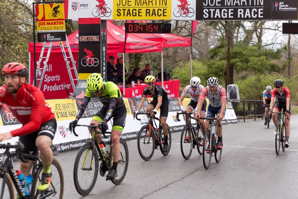 For 42 years, Fayetteville has been home to the Joe Martin Stage Race, one of the toughest stage races in the country. The elite amateur cat 1/2 racers faced two challenging road race courses on Thursday and Friday before the Devil’s Den time trial on Saturday and finally concluding with the downtown Fayetteville criterium on Sunday. Joining me were my City Title Cycling teammates Eric, Reid, Ben G, and Adam. This was the first big race of the season and I hoped to finish a step higher on the podium than I had last year.